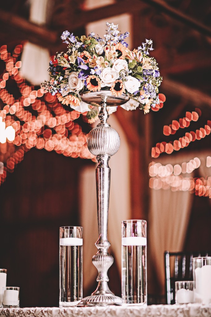 The decor, the sets, the flowers, the candles, the glassware, the plates, the drapery, the colors…all these things come together in a perfect blend of harmonious elegance for the purpose of celebrating the union of two special hearts into one.